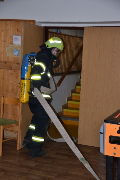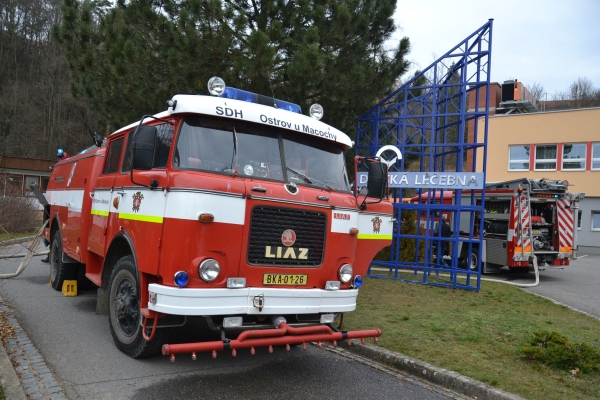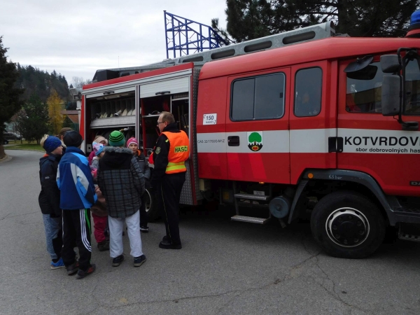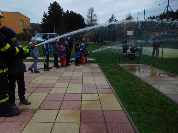 Tedy naštěstí jen jako. Místní jednotka Sboru dobrovolných hasičů i hasiči z okolí nám předvedli cvičný zásah, jak by to asi vypadalo, kdyby skutečně vypukl požár v naší budově. Děti viděly a zažily nejen zásah, ale také evakuaci a ošetření "zraněných". Na závěr si všichni mohli vyzkoušet něco z práce hasičů.