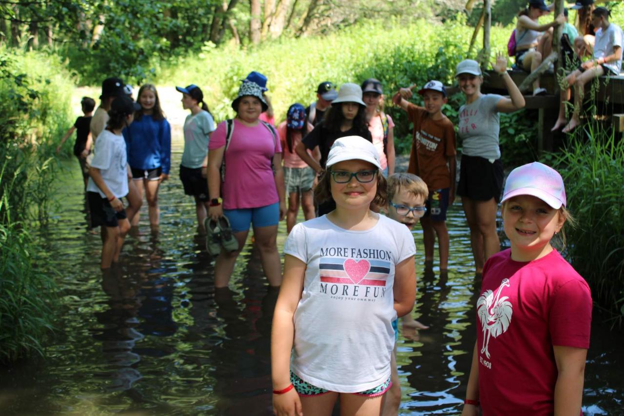 Mezi cíle našich výletů patřila propast Macocha, Baldovec, lesní bar v Holštejně, Vilémovice, Punkevní jeskyně, Balcarka a spousta dalších. Z rukodělných činností se batikovalo o sto šest, pletlo se z ruliček a žádnému tvoření se meze nekladly, nechyběly ani mnohé hry, táborák s opékáním buřtů a vodní bitva, protože letní počasí nám opravdu přálo. A co ještě? Výletovali jsme v Lysicích na zámku a taky v Boskovicích, i to bylo fajn. Sportovalo se, co to jen šlo. Vybíjená ovládla tento turnus a snad ani jediný den jsme nevynechali. Navštívili nás příslušníci Policie ČR z Blanska, aby nám připomenuli pár zásad správného chování o prázdninách a mohli jsme si obléknout i jejich uniformy! Zážitků byla hromada.